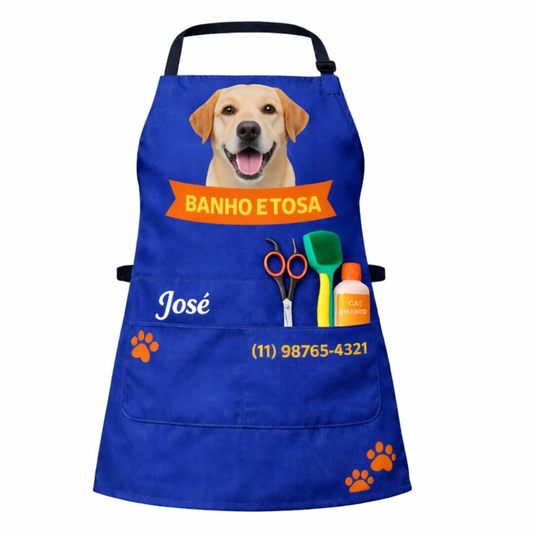 O Avental Banho e Tosa Cachorro Personalizado da Samurai Brindes é ideal para campanhas promocionais, ações de relacionamento e brindes corporativos voltados ao mercado pet.