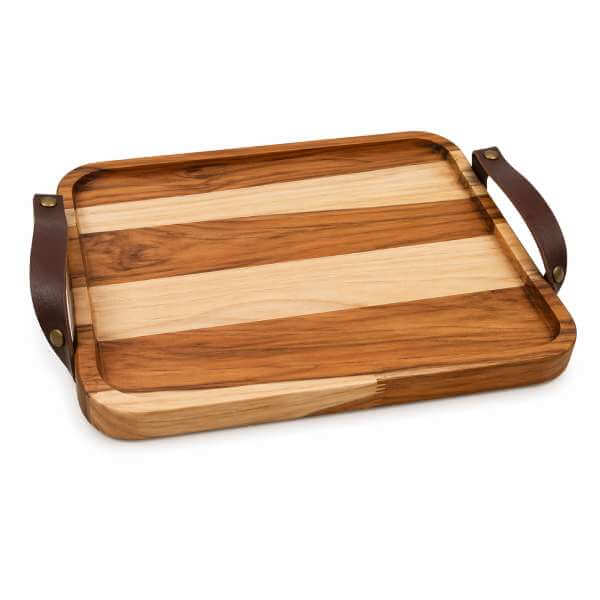 Bandeja de Madeira Feita a Mão com Alças