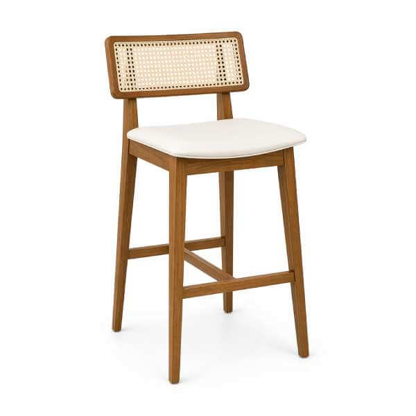 Indicada para eventos, feiras, espaços corporativos e ambientes de convivência, essa banqueta une estrutura em madeira resistente com acabamento de alto padrão. O encosto em tela portuguesa proporciona leveza visual e ventilação, enquanto o assento anatômico garante conforto mesmo em uso prolongado.
