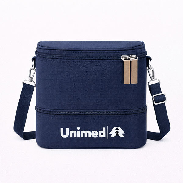 A Bolsa Térmica para Marmita é essencial para o dia a dia. Além disso, contando com 2 andares, você pode organizar os alimentos de forma inteligente a conservar a temperatura por ainda mais tempo! Sobretudo, ela mantém seu almoço na temperatura até a hora de comer, podendo ser personalizada com a sua logo!