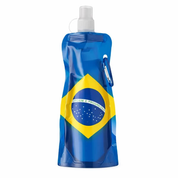 Squeeze Brasil Dobrável é uma excelente opção de brinde para eventos esportivos, como por exemplo, corridas, bravus, gincana, jogos escolares. Tem um baixo custo e se mostra de excelente utilidade. Mosquetão para facilitar o transporte. Possível a personalização com a arte do evento.